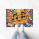 Ein Cartoon-Türmchen mit einem großen Lächeln und musikalischen Noten für die Augen tanzt mit Freude neben einer Gitarre, Schlagzeug und Trompete. Herzlich willkommen bei Ihren Lieben mit diesem - Erstaunliche farbenfrohe musikalische Noten Design für Ihre Füße vor der Türe.