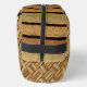 Ziegeldesign in einem Korbwebermuster. Rot, Orange und Gelbtöne in den Ziegeltönen.