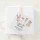 Ein einzigartiges Baby Duschfavorit-Tag mit Aquarellkleidung und Babyspielzeug oben, kombiniert mit "Double the Dankeschön" in handgeschriebener Kalligrafie, perfekt für die Dusche von zwei Mädchen. Zwei Textzeilen, mit denen Sie es anpassen können.