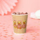 Diese bezaubernde Abbildung zeigt drei niedliche gelbe Entenlings, die in koordinierten rosa Outfits gekleidet sind. Eine Ente trägt einen Bogen und Schal, eine andere wird in einem gepflasterten Outfit geschmuggelt und die dritte trägt ein kaltes Kleid. Der warme, Vintage Polka-Dot-Hintergrund verleiht der Szene ein gemütliches und spielerisches Ambiente und eignet sich ideal für Kinderzimmer-, Grußkarten- oder Kinderdekorationen.