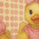 Diese bezaubernde Abbildung zeigt drei niedliche gelbe Entenlings, die in koordinierten rosa Outfits gekleidet sind. Eine Ente trägt einen Bogen und Schal, eine andere wird in einem gepflasterten Outfit geschmuggelt und die dritte trägt ein kaltes Kleid. Der warme, Vintage Polka-Dot-Hintergrund verleiht der Szene ein gemütliches und spielerisches Ambiente und eignet sich ideal für Kinderzimmer-, Grußkarten- oder Kinderdekorationen.