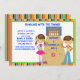Beginnen Sie Ihre Feier weg vom Recht mit einer Bowlingseinladung für diesen speziellen Geburtstagsjungen und -mädchen. Dieses ist, Bowling einladen mit einer bunten, hellen gestreiften Grenze ein niedliches. Die Mitte ist weiß, wo Sie mit Ihren Partyinformationen personifizieren. Sie hat einen Jungen mit dem braunen Haar, das am Rand einer Bowlingsgasse stehend ist, die einen Eiscremekegel in seiner Hand hält. Auf der anderen Seite der Gasse ist ein entzückendes Mädchen mit den braunen langen umsponnenen Schwein-Schwänzen, die auch einen Kegel halten. Die Einladungswörter werden die Gasse notiert. Karo heraus andere Produkte von dieser Sammlung, zum der perfekten Touch Ihrem Party hinzuzufügen. ©JW Illustrationen