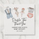 Ein einzigartiges Baby Dusche-Lieblingsplatz mit Aquarellkleidung und Babyspielzeug oben, kombiniert mit "Double the Dankeschön" in handgeschriebener Kalligrafie, perfekt für geschlechtsneutrale Twin Babydusche. Zwei Textzeilen, mit denen Sie es anpassen können.