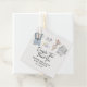 Ein einzigartiges Baby Duschfavorit-Tag mit Aquarellkleidung und Babyspielzeug oben, kombiniert mit "Double the Dankeschön" in handgeschriebener Kalligrafie, perfekt für eine Babydusche mit zwei Jungs. Zwei Textzeilen, mit denen Sie es anpassen können.