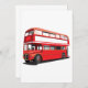 Ein roter Doppeldeckerbus auf der Straße. Dieses Design sieht wirklich effektiv auf diese Einladungen