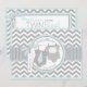 Grauer und weißer Zickzack Druck des Chic mit weich blauem Kontrast und ein niedlicher Polkapunktpullover mit Krawatte und BogenKrawatte und Bogen 3D-look und Band für Doppeljungenbabyduschen-Einladungskarte.