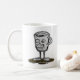 Auf dieser Kaffeetasse befinden sich zwei mit einem Schädel bedeckte Zombie-Kaffeetassen.