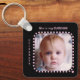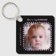 Doppelseitiger Schlüsselanhänger, Keyring Geschenkidee. Ersetzen Sie die beiden Fotos / vorne und hinten und fügen Sie einen Namen hinzu. Schwarzer Hintergrund, rosa Text mit Liebe Herz.