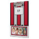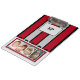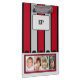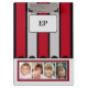 Geschenkidee für doppelseitige Zwischenablage. Fügen Sie Initialen hinzu, die sich auch automatisch auf der Rückseite der Zwischenablage ändern. Ersetzen Sie die 4 Fotos auf der Vorderseite und dann weitere 4 Fotos auf der Rückseite. Rot, grau und schwarz, Streifen.