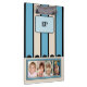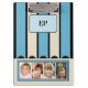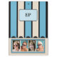 Geschenkidee für doppelseitige Zwischenablage. Fügen Sie Initialen hinzu, die sich auch automatisch auf der Rückseite der Zwischenablage ändern. Ersetzen Sie die 4 Fotos auf der Vorderseite und dann weitere 4 Fotos auf der Rückseite. Blau, Sand und schwarz, mit Streifen.