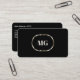 Dieses coole, moderne, berufliche Mono-Visitenkartendesign wurde mit Monogramm-Namensinitialen in einem silberfarbenen Monogramm-Emblem erstellt, das Ihren Firmennamen oder beruflichen Namen darstellen kann. Es hat ein einfaches Layout auf der gedreht Seite, das Ihre Kontaktdaten in einer bearbeitbaren Vorlage enthält, die Sie online anpassen können. Entwickelt für eine Business Führungskraft, Berater, Broker oder Bauunternehmen. Vorgestellt auf abgerundeten Ecke Visitenkartenbestand.