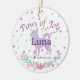 Halte einmalige Familien-Erinnerungen auf diesem gestaltbaren Keramik-Ornament fest. Füge deine liebsten Fotos, Bilder und persönlichen Nachrichten hinzu. Du kannst beide Seiten des Ornaments selbst gestalten. Die goldene Schnur hilft dir dabei diesen Schmuck aufzuhängen und deine Erinnerungen perfekt zu präsentieren.
