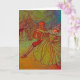 Diese Halloween-Karte aus dem späten 19. Jahrhundert ist ein Viktorianisches Kartenspiel aus der Zeit der 1800er Jahre, auf dem ein glückliches Ehepaar tanzt und im Hintergrund zwei Hexen beobachtet werden. Ebenfalls sichtbar sind eine schwarze Katze, die bekannt ist, und ein dämonisches Wesen, das von Rauch umgeben ist.