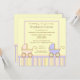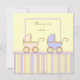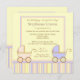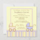 Zweimal so nett! Die ist die Mitteilung auf dieser Babypartyeinladung, der rosa der Eigenschaften entzückende und blaue Kinderwagen mit rosa, blau, gelb färben und Streifen auf einem gelben Hintergrund bräunen.