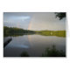 Machen Sie den Tag friedlich, indem Sie ihnen dieses atemberaubende Foto von zwei Regenbögen über einen unberührten See schicken.