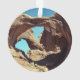 Der Vordergrundbogen bildet eine raue ovale Öffnung nahe der Mitte des Rahmens. Die Felsenbildung verlängert heraus auf das links, in der Sonne und rechts, im Schatten. Durch ihn kurvt der zweite Bogen unten, um die Felsenwand im Hintergrund zu treffen. Der hellfarbige Sandstein zeigt viele dunklen Streifenbildungen in seinen beschatteten Teilen. Über und über den Bögen hinaus heben drei Abschnitte hellblauer Himmel die tan Sandsteinstrukturen hervor.