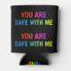 Mit diesem fetten **"You Are Safe With Me"** Getränk cooler von Sarendestini Designs bleibe und laut bleibe. Das Design wiederholt sich auf beiden Seiten, sodass die Botschaft, egal wie Sie sie halten, gesehen wird. Set auf schwarzem Hintergrund mit dem **PrideVibe Logo** am unteren Rand, dieser kann kühler ist eine leistungsstarke, tragbare Erklärung für alle Schiffe, Sicherheit und Stolz. Ideal für Festivals, Stolzparaden oder den alltäglichen Support. #YouAreSafeWithMe #PrideCanCooler #LGBTQSupport #PrideVibe #BlackBackgroundBoldness #SafeSpace #SarendestiniDesigns #PrideInEverySip #LoveIsLove #VisibleAlly
