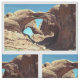 Stilvolles Gewebe kennzeichnet eine Hälfteziegelstein Wiederholung einer Fotografie des doppelten Bogens im Bogen-Nationalpark nahe Moab, Utah. In diesem FarbFoto geben zwei unermessliche Entrada Sandsteinbögen dem sehr eindrucksvollen doppelten Bogen seinen Namen.
