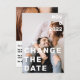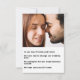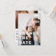 Mit dieser hochmodernen Änderung der Dattelkarte, die eine Mischung aus schicker Tradition und minimalistischer Eleganz bietet, kündigen Sie Ihre aktualisierten Hochzeitspläne an. Grosser, feiner weißer Text überlagert Ihr eigenes romantisches Foto und sorgt sofort für Aufmerksamkeit, während der Rücken Platz für ein anderes Bild und alle wichtigen Veranstaltungsdetails bietet. Die übersichtliche Anordnung und die leicht lesbare Typografie sorgen dafür, dass Ihre Botschaft klar ist, und machen sie zur idealen Wahl für behaltend Lieben, die für Ihren großen Tag informiert und begeistert sind.