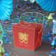 Schöne Red and Gold Personalisierte chinesische Double Happiness Gastgeschenk Hochzeit Take-Out Box. Füge Deinen Namen hinzu. Roter chinesischer kultureller Hintergrund.