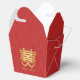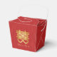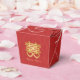 Schöne Red and Gold Personalisierte chinesische Double Happiness Gastgeschenk Hochzeit Take-Out Box. Füge Deinen Namen hinzu. Roter Faserhintergrund.