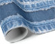 Blauer Jeans Stoff Rahmen. Bleichte Denim-Gewebe mit Randstreifen auf blauem Denim-Hintergrund, Textstelle, Kopierraum. Worn Jeans Lässige Doppelfarben-Patch Jeans Stoffrahmen in lässigem blauen Chic. Bleichdenim mit Randstreifen für diese einmalige Touch. Mit diesem blauen Stoffrahmen schaffen Sie stilvolle Denim-Villen. Doppel der Denim, doppelt der Spaß! Denim, Textur, Patchwork, gewürfelt, Muster, Hintergrund, Dekoration, Rahmen, Vintag, blau, Stoff, alt, Kleidung, Textil, Baumwolle, Leinwand, Stoff, Faser, Bekleidung