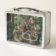 Das Bild eines Gnome-Dorfes auf einem Baumstamm im Wald.
