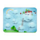 Surreale Abbildung mit Dorf über den Wolken und Treppen. Digitale Kunst