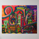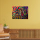 Wie eine Straße zwischen kleinen orientalischen Dörfern umgibt ein Regenbogen bunte kleine Häuser - das Bild ist in Grün- und Rottönen gemalt. Das Bild ist mit Holzmarkierungen von Carina Rainbow, Berlin 2011 bemalt.