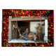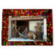 Siehe die Krippe des Dorfes! Im Kern entfaltet sich die Szene mit dem Baby Jesus, Mary und Joseph, umkreist von einem Kaleidoskop von Sternen. Ein Dorfbewohner wird dargestellt, wie er die Tür öffnet, um Jesus und der Heiligen Familie eine Ehre zu erweisen, während verschiedene Elemente Set gegen eine lebendige farbige Kulisse sind.