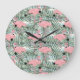 Dorm Clock mit rosa Flamingos Niedliche Palmblätte Große Wanduhr