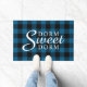 Einzigartige, elegante und dekorative, moderne Bauernstube mit niedlichem Dorm Sweet Dorm Zitat, auf einem klassisch blauen und schwarz gefärbten Buffalo Lumberjack Karo Muster Design.