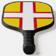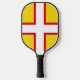 Pickleball Paddle mit Design mit einer Fahne des historischen Landkreises Dorset in England, Großbritannien; gelbe Fahne mit weißem Kreuz mit roter Grenze