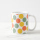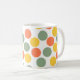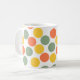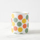 Diese Tasse hat eine geometrische Form von Punkten in Korallen, Gold und Salbei grün.