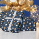 Modernes Weihnachtspapier mit blauen, weißen und goldenen Punkten mit einem Namen auf dunkelblauem Hintergrund. Personalisieren Sie den Text einfach. Sie können es nicht nur zu Weihnachten benutzen - Kate Eden Art