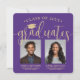 Es ist ein doppelter Abschluss! Verkünden Sie die Errungenschaft von zwei Absolventen mit stilvollen gemeinsamen Abschluss benutzerdefinierten Foto-Quadrat Ankündigungen. Die Bilder und Texte sind einfach zu personalisieren für Ankündigungskarten oder Abitur-Party Einladungen. Zusätzlich können die Farben mit dem Zazzle Designwerkzeug angepasst werden. (IMAGE PLACEMENT TIP: Eine einfache Möglichkeit, ein Foto genau so zu positionieren, wie Sie es gewollt haben, besteht darin, es einzuschneiden, bevor Sie es auf die Zazzle-Website hochladen.) Das moderne lila und goldene Design besticht durch handgeschriebene Schreibkalligraphie mit einer Mörtel-Kappe, elegante klassische Typografie und vier Fotos Ihrer Wahl, wie Seniorenbilder oder Bilder aus der Antrittsfeier. Bitte beachten Sie, dass Gold farblich gedruckt ist, nicht metallische Folie. Diese Einladungskarte ist eine stilvolle Möglichkeit, einen besonderen Tag für zwei Klassen anzukündigen, wie zum Beispiel Geschwister, beste Freunde, Cousin, Zwillinge, Abschluss und Schwestern, etc. Herzlichen Glückwunsch an beide Absolventen!