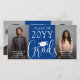 Es ist ein doppelter Abschluss! Verkünden Sie die Errungenschaft von zwei Absolventen mit stilvollen gemeinsamen Abschluss Custom Foto Ankündigungen. Alle Bilder und Texte sind einfach zu personalisieren für Ankündigungskarten oder Grade Party Einladungen. Zusätzlich können die Farben mit dem Zazzle Designwerkzeug angepasst werden. Das moderne königsblau-weiße Design besticht durch handgeschriebene Schreibkalligraphie mit einer Mörtel-Kappe, elegante klassische Typografie und vier Fotos Ihrer Wahl, wie Seniorenbilder oder Bilder aus der Anlaufzeremonie. Diese Einladungskarte ist eine stilvolle Möglichkeit, einen besonderen Tag für zwei Klassen anzukündigen, wie zum Beispiel Geschwister, beste Freunde, Cousin, Zwillinge, Abschluss und Schwestern, etc. Herzlichen Glückwunsch an beide Absolventen!