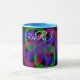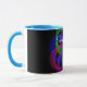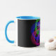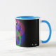 Modern 3D circular inspired double loop mesh geometric custom coffee mug. Unique features include a colorful design, custom text and additional mug color options.