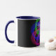 Modern 3D circular inspired double loop mesh geometric custom coffee mug. Unique features include a colorful design, custom text and additional mug color options.