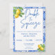 Double the babies, double the squeeze! This bright and zesty lemon twin baby shower invitation is the perfect way to invite your friends and family to celebrate the arrive of your twins. This theme is ideal for a spring or summer party, bringing in the citrus and Greek-inspired style.
