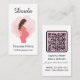 Whimsical Aquarellbild einer glücklichen Mama-to-be doula Visitenkarte in gürtelrosa Farbtönen. Fügen Sie Ihre Spezialgebiete am Ende der Karte hinzu. QR-Code Kontaktinformationen auf der Rückseite. #Doula #BirthSupport