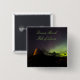 Ein quadratisches Abzeichen mit einer bunten nightime Fotografie des Doune Broch, Carloway, Insel von Lewis mit grüner und lila Aurora/Nordlichtern und Sternen.
