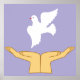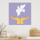Freisetzung eines Taubenvogels aus den Händen. Dieses Design sieht wirklich effektiv aus auf diesem Poster