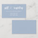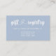 Romantische taubenblaue Registrierungskarte für eine Hochzeit mit weißem Text vor einem hellblauen Hintergrund. Niedliches Drehbuch mit verschlungenen Herzen.