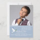 Eine blaue Tafel mit gepunkteter oberer Grenze zeigt eine weiße Taube mit einem Blätter in seinem Schnabel. Eine Einladung, die perfekt für jede religiöse Feier ist. Fügen Sie einfach Ihr Lieblings-Foto hinzu. Die Karte lässt sich leicht mit Ihren Formulierungen, Schriftart, Schriftart und der Auswahl von sechs Papiersorten anpassen. Nicht genau das, was Sie suchen? Alle unsere Produkte können auf Ihre Bedürfnisse zugeschnitten werden, ohne Aufpreis. Kontaktieren Sie uns einfach unter: askcottonlamb@gmail.com Coordinating products available: