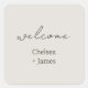 Ein schicker und eleganter Begrüßungsaufkleber mit einigen Namen in einem zeitgenössischen Set aus neutralen, schwarzen Schriftart vor einem schicken, grau getauchten Hintergrund. Dieser Artikel ist Teil einer Hochzeitssuite, die Einladungen enthält und in einer Vielzahl von neutralen Mix- und Match-Artikeln stationiert ist. .