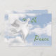 Friedenstaube und Olivenzweig am blauen Himmel mit puffigen Wolken.