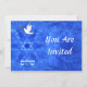 Einladung für eine Bar/Bat Mitzvah, eine Hochzeit oder andere Veranstaltung. Die "Shalom" (hebräisch "Peace") und eine Taube, die ein wenig Olivenzweig in ihrem Schnabel trägt, auf einem schönen, blauen und weißen Fraktal, das an Vogelflügel erinnert. Das Hintergrundbild sowie die Taube und der hebräische Text sind eigenständige Elemente, die es ermöglichen, sie alle zu groß, rotiert oder auf andere Weise verschoben zu werden.