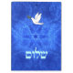 Die "Shalom" (hebräisch "Peace") und eine Taube, die ein wenig Olivenzweig in ihrem Schnabel trägt, auf einem schönen, blauen und weißen Fraktal, das an Vogelflügel erinnert. Die Taube und der hebräische Text sind eigenständige Elemente, die eine Größe, Rotation oder andere Bewegung ermöglichen.
