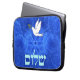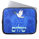 Feys "shalom"(Hebrew "peace") and a dove carrying a bit of olive branch in its beak on nice blue and white fractal background which is reminiscent of birds wings.